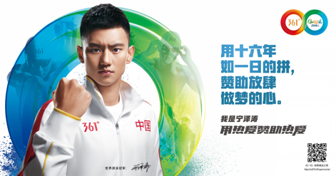 361°作为2016年里约奥运会合作伙伴,奥运期间通过孙杨、宁泽涛、叶诗文等签约运动员对其体育用品进行品牌推广,并通过志愿者服饰支持体现 361°对奥运会的赞助服务。